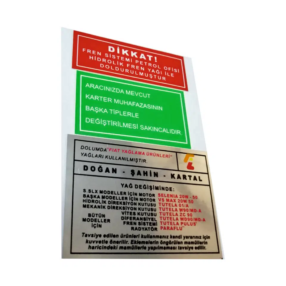 EtiketlerTofaş Murat 131 / Doğan / Şahin / Kartal / Slx Motor İç Etiketi